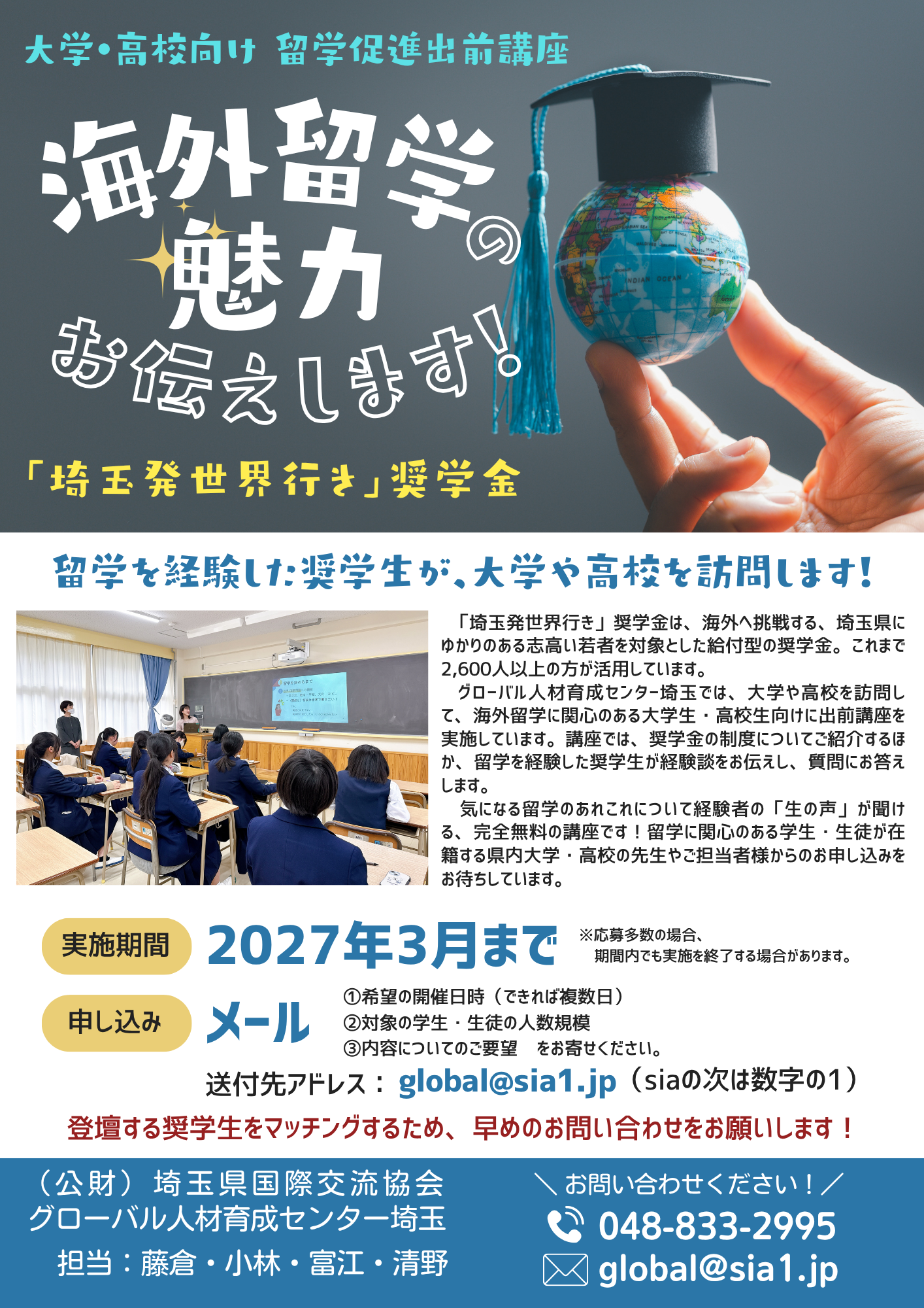 「埼玉発世界行き」奨学生が自らの留学経験をお伝えします!